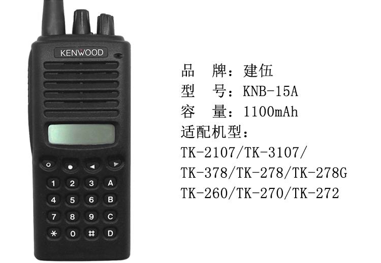 建伍KNB-15A---TK2107G/TK3107系列 鎳氫電池